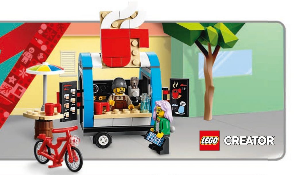 Se puede ver una barra de café móvil sobre ruedas, incluye dos minifiguras. Se desconoce por ahora el número de piezas del que estará formado.