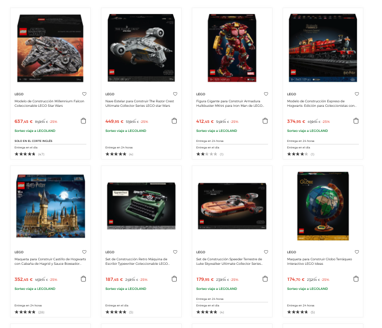 Gran promo para conseguir esos sets exclusivos que otras tiendas no tienen y aprovechar el 25% de descuento que ofrece El Corte Inglés en LEGO. Puedes acceder a la promo desde aquí