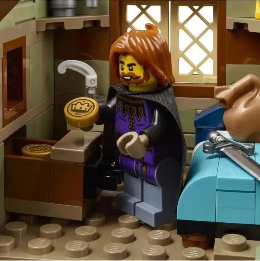 - Características y funciones: Este set LEGO® Icons cuenta con un sinfín de divertidos detalles, como una grúa en el taller de carpintería y un compartimento secreto en la cámara donde dormían los huéspedes en la posada Las Hachas Rotas