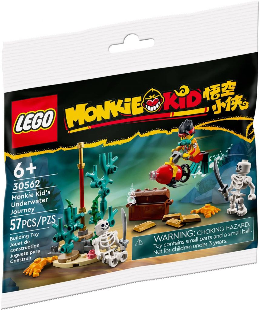 Otra promoción es la de la polybag de LEGO Monkie viaje submarino ( 30562 ), gratis con una compra superior a 40 euros . El set de regalo contiene dos esqueletos armados, un Monkie Kid con equipo de buceo, un cofre del tesoro con lingotes de oro y un poco de vegetación submarina.