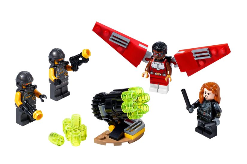 Los fans de LEGO Marvel que adquieran este set podrán encontrar 2 populares personajes Marvel Vengadores (el alado Falcon y la supersoldado Viuda Negra) y 2 agentes de A.I.M. enemigos.