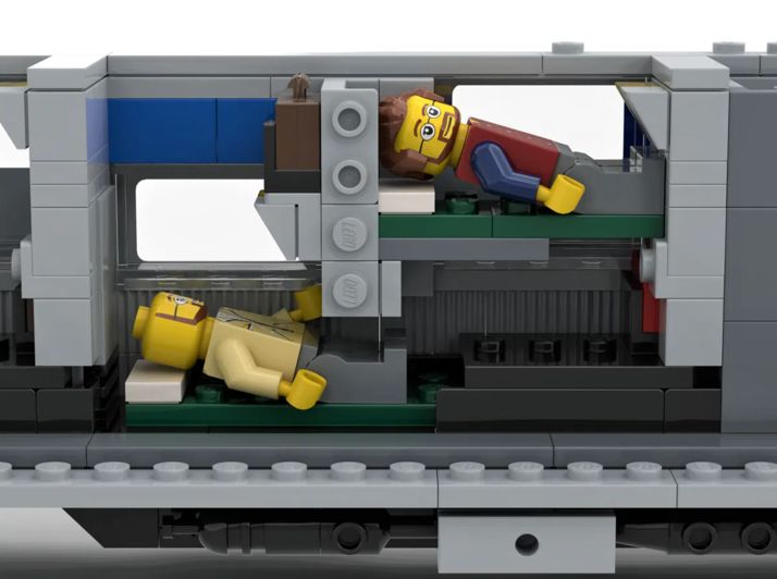 - Incluye locomotora F40PH-2D y 3 vagones de pasajeros (equipaje, cama y domo) y 7 minifiguras.